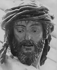 Other works were the great altars at Santa Clara in Seville and at San Miguel in Jerez, the Immaculate Conception and the realistic figure of Christ Crucified in Cristo de la Clemencìa, commissioned in 1603,[2] in the sacristy of Seville cathedral (illustration); the figure of St John the Baptist, and the St Bruno (1620); a tomb for Don Pérez de Guzmán and his wife (1619);[1] the highly realistic polychromed wood head and hands of St Ignatius of Loyola (1610) and of St Francis Xavier in the university church of Seville, where the costumed figures were used in celebrations.