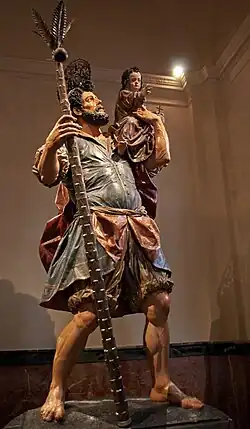 His first known work, dating to 1597, is the graceful St. Christopher in the church of El Salvador at Seville. His Boy Christ (dated 1607) is in the sacristy of the cathedral of Seville. His masterpiece, the great altar of St Jerome at San Isidoro del Campo, Santiponce, near Seville, was contracted in 1609 and completed in 1613. Montañés executed most of his sculpture in wood,[1] which was gessoed, polychromed and gilded.