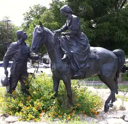 Statue of Juana and her husband Charles Barnard near the Glen Rose plaque