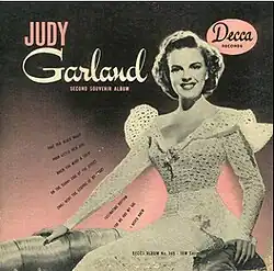 Judy Garland Second Souvenir Album is the second compilation album by Judy Garland. It was released in 1943, by Decca Records.[1][2] The album was made to celebrate Garland's first starring role in a film, For Me and My Gal, and the success of the title song which she performs with co-star Gene Kelly.[1] Most of the songs are revivals of old standards.[1]