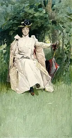 His illustrations featured some elements of symbolism and mysticism; notably those for Taj Mahal, a poem by the Swedish writer Andrea Butenschön (1895), and Goulab Soubi, an Orientalist story by René de Pont-Jest (1896). He also created religious decorations at the original Église Saint-Michel d'Étaples, which was destroyed during World War II. He is, however, best remembered for his portraits, which depict faces and hands in great detail, while the clothing and background décor are merely sketched out in lines.[2]
