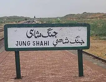 Jungshahi Railway Station (Urdu: جنگ شاہی ریلوے اسٹیشن, Sindhi: جنگ شاهي ريلوي اسٽيشن) is a railway station located in Jungshahi, Thatta district of Sindh province, Pakistan.[1][2]