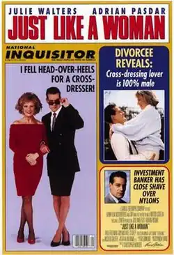 Just Like a Woman is a 1992 British comedy-drama film directed by Christopher Monger, and starring Julie Walters, Adrian Pasdar and Paul Freeman. The screenplay by Nicholas Evans is based on the 1985 novel Geraldine, For the Love of a Transvestite by Monica Jay. One of few "cross-dressing" films in which the hero is actually a transvestite, therefore having pure intentions, unlike Some Like It Hot, Tootsie, Mrs. Doubtfire and others in which the cross-dresser has an ulterior motive, the film was a modest commercial and critical success.