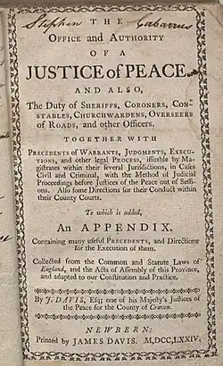 - ^ Davis, James (1774). The Office and Authority of a Justice of Peace.