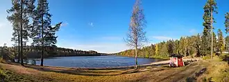 The southern shores of the lake are covered by relatively old spruce-dominated forest, providing habitat for Siberian flying squirrels, which are endangered in Finland. Notable plants found in the area include Platanthera bifolia and Goodyera repens.[7]