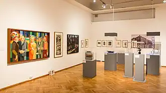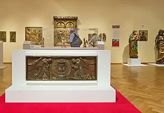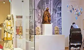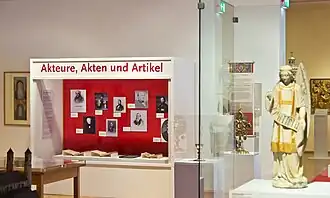 After the Millennium Exhibition in 1925, which presented numerous objects from the historical museum, these were largely transferred to the new Rhenish Museum in Deutz, with which it was eventually merged.[42] Modern exhibition techniques such as "instructive models, casts [and] statistics" were added to the inventory.[9] Due to the concept of the new museum being extended to the Rhineland, objects of rural and middle-class domestic culture from the Lower Rhine region to the Westerwald were added. From 1925 onwards, a collection of Judaica was built up, which now (2013) comprises around 350 objects.[43]