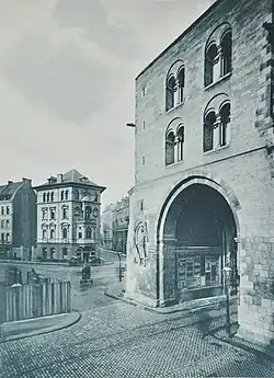 Arthur Pabst, the director of the new Kunsthistorisches Museum, took over the management – on a part-time or honorary basis – until his early retirement in 1894.[6] However, the institution was clearly shaped by his successor Joseph Hansen, who also worked in a dual function as director of the archive and was thus able to systematically process the collection holdings and their inner connections: documents and manuscripts in the archive, "pictorial and figurative illustrative material" into the museum.[6] His museum concept is considered by the current director Mario Kramp to be thoroughly modern, as he went beyond the local consideration of Cologne; he considered research, publication and mediation to be equally the task of his institution. Hansen was director until 1924 and managed, for example, to gain the Eigelsteintorburg as a second location in 1902. Although this was not considered optimal,[7] it allowed for a somewhat larger permanent exhibition. Since there was no depot, the substructures of the showcases were used as cabinets for coins and parts of the graphic collection.[7]