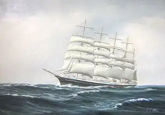1. ^ a b c d e f g h The Last of the Windjammers, vol 2, Basil Lubbock ISBN 0 85174 114 2