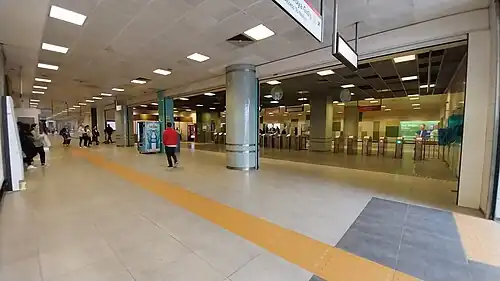 Küçükyalı is an underground station on the M4 line of the Istanbul Metro in Maltepe.[2] It is located beneath the D.100 State Highway, in the Çınar neighborhood. Connection to IETT city buses and Istanbul Minibus service is available. The station consists of an island platform with two tracks and was opened on 17 August 2012.[3]