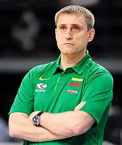 At the EuroBasket 2005 and 2006 FIBA World Championship, Kemzūra served as an assistant coach with the senior Lithuanian national team. On 5 November 2009, Kemzūra became the head coach of Lithuania.[16][17] Under Kemzūra, Lithuania won the bronze medal at the 2010 FIBA World Championship. He also coached the team to a 5th-place finish at the EuroBasket 2011, and to an 8th-place finish at the 2012 Summer Olympics. In October 2012, he was replaced as head coach by Jonas Kazlauskas. In October 2021, Kemzūra returned to the team as an assistant coach under Kazys Maksvytis. He left the position in June 2023.