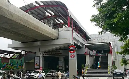 KD Singh Babu Stadium is an elevated metro station on the North-South Corridor of the Red Line of Lucknow Metro in Lucknow, Uttar Pradesh, India. It was opened to the public on 8 March 2019.[1][2][3][4]
