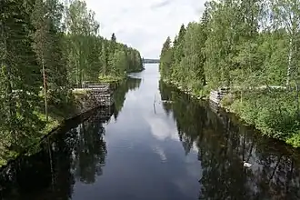 The Kaavinkoski Canal flows from Kaavinjärvi to Rikkavesi.