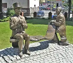 Two Older Gentlemen, a sculpture dedicated to Jeremi Przybora and Jerzy Wasowski in their cabaret attires, Opole