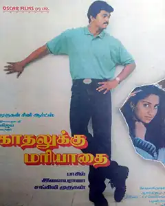 Kadhalukku Mariyadhai (transl. Respect for Love) is a 1997 Indian Tamil-language musical romantic drama film directed by Fazil. It is the Tamil remake of his own Malayalam film Aniyathipraavu (1997). The film stars Vijay and Shalini (reprising her role from the original), while Sivakumar, Srividya, K. P. A. C. Lalitha, Manivannan, Dhamu, Charle, Thalaivasal Vijay, and Radha Ravi play supporting roles. It tells the story of a couple of differing backgrounds and beliefs and how they unite amidst the opposition of their families. The music was composed by Ilaiyaraaja with cinematography by Anandakuttan.
