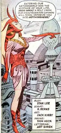 ![]() Kala, Queen of the Netherworld from her first appearance in Tales of Suspense #43 (July, 1963). Art by Jack Kirby. | |