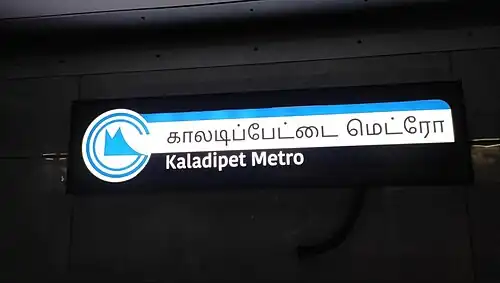 Kaladipet (formerly known as Thangal Metro station)[1] is an elevated metro station on the North-South Corridor of the Line 1 Extension of the Blue Line of Chennai Metro in Chennai, India. This station will serve the neighbourhoods of Kaladipet and other northern suburbs of Chennai.