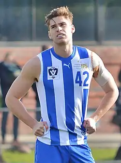 1. ^ a b Gabelich, Josh (2 June 2022). "From B-Grade amateur to the big time: Electrician now a Roo". AFL Media. Telstra Media. Retrieved 7 August 2024.