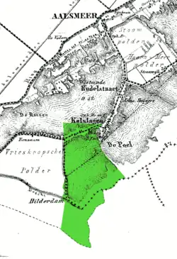 The municipality covered the hamlet of Calslagen and a number of polders to the south, including part of the hamlet of Bilderdam.[3] In 1854, the municipality was divided between Aalsmeer, Uithoorn, and Leimuiden; the hamlet Calslagen itself became a part of the municipality Aalsmeer.