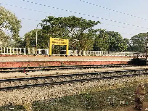 Kalupara Ghat railway station is a railway station on the East Coast Railway network in the state of Odisha, India. It serves Kalakaleswar village. Its code is KAPG. It has three platforms. Passenger, MEMU, Express and Superfast trains halt at Kalupara Ghat railway station.[1][2][3][4]
