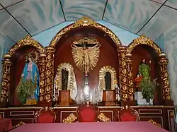 Altar showing the Twin Crosses on either side of the crucifix | |
