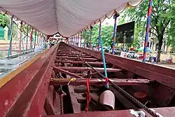 The boat was built to remember the history of production and use of dragon boats by the Khmer people and Khmer kings in older times, who used dragon boats as means of transport to defend the territory.[2] The boat was built by Union of Youth Federations of Cambodia at an overall cost of US$60,000 (equivalent to $75,131 in 2024). Construction of the boat began in April 2018 and it took nearly seven months to finish the construction. The boat measures 87.3 metres (286 ft) in overall length, 1.99 metres (6.5 ft) in width and it can accommodate 179 oarsman.[3][4][5] More than 13,000 people participated in the construction of the boat and it was completely hand-made.[6]