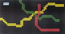 Kamila B. Richter - M-System. The participatory web project M-system offers a simple abstract reality of the Prague subway transportation system wherein an individual trace of participation can be entered to change the otherwise strict map of the subway net collectively..