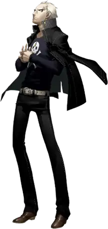 His sexual orientation remains ambiguous across the series, with Kanji being first interested in Naoto Shirogane when first meeting her, believing her to be a boy, but is still attracted to her when it is revealed that she is a girl. It can be easy to interpret that he is bisexual rather than strictly homosexual or heterosexual.[17] His Persona is Take-Mikazuchi (タケミカヅチ), an imposing, black, robotic humanoid which has a skeleton-like design, like Kanji's shirt, and is armed with a large lightning bolt.[15] Throughout Yu's interactions with Kanji, he reveals to be skilled at tailoring inspired by his family who runs a textile shop but stopped making dolls when accused by fellow students. Kanji eventually learns to take pride in his skills, rather than hide them.[18] Shortly afterwards, Take-Mikazuchi evolves into Rokuten Maoh (ロクテンマオウ, Rokuten Maō), who has a fiery motif instead of Take-Mikazuchi's skeleton and lightning.[19] In Persona 4: Golden, Kanji's new Persona is Take-Jizaiten (タケジザイテン), which resembles Rokuten Maoh but has elaborate white armor with red flame details.[20]