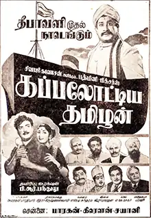 Kappalottiya Thamizhan (transl. The Tamilian who launched a ship) is a 1961 Indian Tamil-language historical drama film produced and directed by B. R. Panthulu. The film stars Sivaji Ganesan, Gemini Ganesan and Savitri. It is based on the 1944 book of the same name by M. P. Sivagnanam, a biography of V. O. Chidambaram Pillai who founded the Swadeshi Stream Navigation Company to break the monopoly of the British over maritime trade out of India.