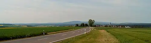Kappel lies at the edge of a plateau which is capped off in the northeast by a knoll of some 525 m above sea level known as the Hasensteil. Between the flat hollow of the Kyrbach (brook) and a small gulley in Mörßberg (a long vanished village) towards Kludenbach, this plateau forms a ridge that presents itself especially prominently as a spur at the church hill. Beyond the brook, the plateau stretches on farther towards Frankfurt-Hahn Airport. On the horizon, it is marked by the Idarkopf (mountain).[3] Also, it was in the neighbourhood of Zeller Straße (street) that water from the local aquifers was first drawn. This laid the groundwork for the settlement that has sprung up here.