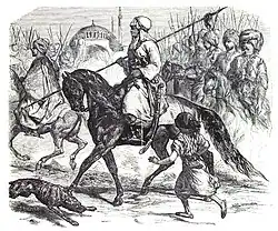 Fatima Khanum arrived in Constantinople at the beginning of the Crimean war with a retinue of 300 horsemen "to request an audience with the padishah to show support and offer assistance."[8] One German observer described her as having a "manly look".[8] Fatima Khanum's exact dates appear uncertain, however, and scholar Michael Gunter has suggested that she fought in the Russo-Turkish war of 1877.[6]