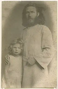 ![]() Diefenbach around 1885 with his son Helios (born 1880), taken by German photographer Georg Pettendorfer | |