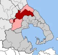 Karla (Greek: Κάρλα) is a former municipality in Magnesia, Thessaly, Greece. Since the 2011 local government reform it is part of the municipality Rigas Feraios, of which it is a municipal unit.[2] The municipal unit has an area of 223.591 km2.[3] The population of the municipal unit is 3,766 (2021). It is an agricultural area producing cereals, cotton and vegetables (28 kilometres away from Volos). The capital of the municipality was Stefanovikeio. The municipality was named after Lake Karla although in the antiquity was known as Voivis. This shows that it was dedicated to the sun and the goddess of light Phoebe who was Leto's mother. Leto was the mother of Apollo who also had the name Phoebus which means the sun.