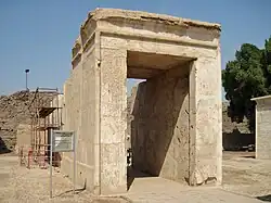 Preventive archaeological excavations before the renovation of Amenhotep II's calcite shrine were observed in this area by the Centre Franco-Égyptien d'Étude des Temples de Karnak (CFEETK), including an urban unit with mudbricks walls of Saito-Persian time.[2] Also discovered during CFEETK excavations were terracotta figures with female representation called "concubines;" such figures are commonly found in levels related to construction and may be votive objects which ensure the sustainability of construction.[3]
