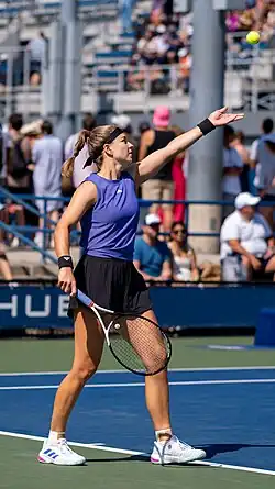 In Cincinnati, she reached the final of a WTA 1000 for the first time, losing to sixth seed Coco Gauff in two sets but she recorded a career-high ranking of No. 10.[55] At the US Open, Muchová again hit a good form by reaching the semifinals of the tournament for the first time in her career and second at a major in the season. She won her opening three rounds in straight sets, defeating Storm Hunter,[56] Magdalena Fręch,[57] and Taylor Townsend,[58] before getting past Wang Xinyu in three sets in the fourth round.[59] She then quickly dispatched Sorana Cîrstea in her quarterfinal match, only losing three games.[60] In the semifinals, she lost her second match to Coco Gauff in a month, falling in two sets in what would ultimately be her last match of the season.[61] Despite the loss, Muchová reached a career-high ranking of world No. 8 on 11 September 2023.[62]