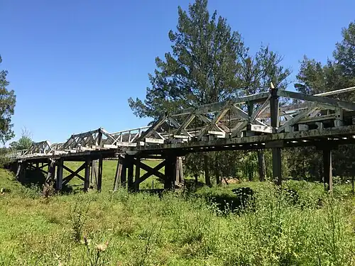 The bridge is the second-oldest surviving timber truss road bridge in New South Wales, and is one of only two surviving Old PWD truss bridges in existence. The design of the Bridge is historically significant through its links to earlier European timber truss bridges, the designs of which can be traced back to the influence of the 16th Century Italian architect, Andrea Palladio. The Bridge is historically significant through its association with the expansion of the NSW road network, and the contribution of that road system to the settlement and development of NSW. The form and fabric of the Bridge are significant in reflecting the requirement of an 1861 parliamentary decree that local materials be used in the construction of public works, to reduce the costs associated with the importation of iron, which was not produced locally at that time.[1]