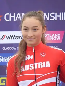 Kathrin Schweinberger (born 29 October 1996) is an Austrian racing cyclist, who currently rides for UCI Women's WorldTeam Human Powered Health. She rode in the women's road race event at the 2017 UCI Road World Championships.[5] Her twin sister Christina Schweinberger is also a professional cyclist.