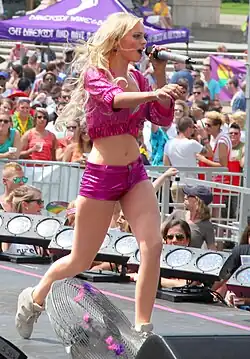 Glieson performed on the mainstages at LA PRIDE, OC PRIDE and CAPITAL PRIDE in 2014.[10] After appearing in the Princess Rap Battle, Glieson also released her original song "Look At Us" on YouTube, featuring Ongina from RuPaul's Drag Race and YouTuber Zedakiah. Lyrically, "Look At Us" embodies female empowerment and celebrates the idea of staying true to who you are.[11] Glieson also uploads covers to YouTube, such as "Black Widow".[12] Glieson has millions of fans on various social media platforms including TikTok (formerly 'Musical.ly') where she uploads her music, singing, comedy and other videos.[13]