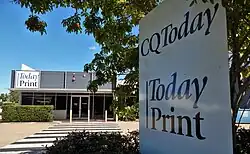 The Today Print newspaper printing press operations and the offices of CQ Today are at 5-9 Hempenstall Street.(23°20′16″S 150°30′39″E / 23.3378°S 150.5108°E) Operations at the print site re-commenced in 2021.[25] This was following its closure in 2020 amid News Corporation's decision to cease the publication of most of their daily Queensland newspapers.[26][27] The printing press operations had initially commenced at the site when they were relocated from the Bulletin Building in Quay Street in 2007.[28]