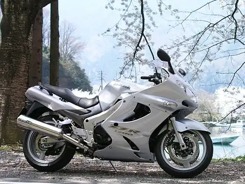 The ZZ-R1200 or ZX-12C, is a sport touring motorcycle made by Kawasaki from (2002–2005). Identified by its model number ZX1200-C1, it is the successor to the ZX-11(1990–2001).[6] Considered a sport tourer, it had a twin-spar aluminum frame and a liquid-cooled, DOHC, four-stroke 1164cc inline-four engine. It has twin fans, fuel pumps, and headlights. Additionally, hard touring bags can be added as an option. With factory rear wheel horsepower of 145HP (158.8HP Claimed @9800 RPM.[3][5][4] It was even more powerful than the fuel injected Honda CBR1100XX. It has been said it was more powerful than any other production motorcycle carbureted or not at 9,800 rpm where it made peak power except the Suzuki Hayabusa or ZX-12R.[5][4] With a quarter mile time of 10.12 seconds at 136.9 mph.[4]