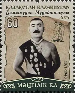 Kazhymukan Munaitpasov (Kazakh: Қажымұқан Мұңайтпасұлы, Qajymūqan Mūñaitpasūly; Russian: Хаджимукан Мунайтпасов 7 April 1871 – 12 August 1948) was a Kazakh wrestler, strongman and circus performer. He was the first Kazakh world champion in Greco-Roman wrestling, winning titles across Europe and the Americas.