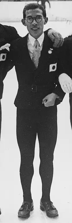 He went on to win two more medals at the Japanese championships, silver in 1933 and bronze in 1935.[6] In 1936, he again competed abroad; he placed 15th at the European Championships, 20th at his second Winter Olympics, and then 15th two weeks later at the World Championships.[4]