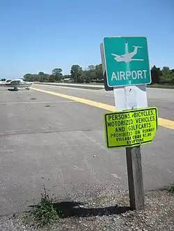 The east side contains a small public airport, called the Kelleys Island Land Field Airport (FAA LID: 89D).[45] It features a terminal building, a single runway, and a parking area for planes.[45][46]