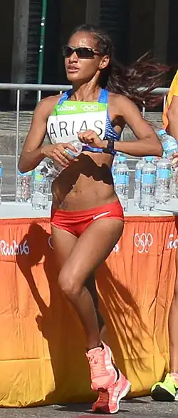 Kellys Arias (born 3 July 1989) is a Colombian long-distance runner who specialises in the marathon. She competed in the women's marathon event at the 2016 Summer Olympics.[1] She holds Colombia's women's division records in the marathon (2:29:36, 6th place women's division at 2016 Hamburg Marathon,[2] an Olympic qualifying time) and the half marathon (1:11:21, 19th place women's division at 2016 IAAF World Half Marathon Championships[3] at Cardiff University) and in the lead up to the Rio Olympics she won the 2016 Panama City Half Marathon.[4] On 8 July 2018 Arias won the 10,000 meters in 34:39.32[5] at the Colombian National Championships on the new track at Rafael Cotes Municipal Stadium in Barranquilla. The track was renovated in preparation for the 2018 Central American and Caribbean Games where Arias finished 5th out of 7 runners in the 10k final in 35:01.57 on 29 July.[6]