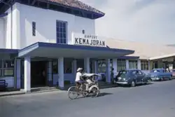 The rapid growth of Jakarta's urban area also impacted the capacity of Kemayoran Airport.[9] Its usage was close to and sometimes exceeded the designed capacity. The airport was only designed to accommodate 500-600 passengers per day. However, by the end of 1967, the number of passengers had already exceeded 1,000 per day.[18] This number continued to increase, reaching 3,000 per day in 1973. As a result, the waiting rooms were always overcrowded and uncomfortable.[19]