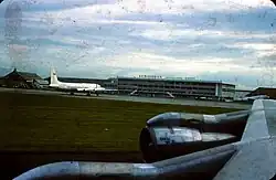 ![]() The view of Kemayoran Airport from a Qantas Boeing 707 while an Aeroflot Ilyushin Il-18 rests at one of the terminals. | |||||||||||||||