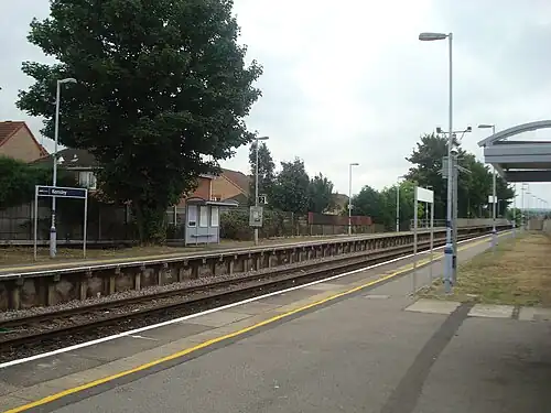 Kemsley railway station is on the Sheerness Line in north Kent, England, and serves the village of Kemsley. It is 45 miles 20 chains (72.8 km) down the line from London Victoria. Train services are provided by Southeastern.[1]