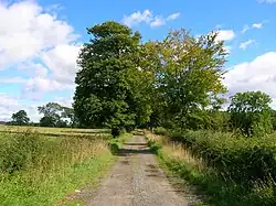 Over many years this society paid several visits to Kennox and on one visit in 1930 they were told by McAlister, the Laird of Loup and Kennox, that the nearby name Gallowayford is derived from the Gallows which permanently stood beside the ford on the Glazert.[6] It was also noted that an ancient Yew tree grew in the grounds which challenged the Loudoun Castle yew in size and antiquity. A very fine specimen of a Hornbeam was also noted.