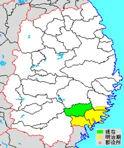 • April 1, 1955 - The town of Setamai and the villages of Shimoarisu and Kamiarisu merged to form the town of Sumita (1 town, 4 villages)