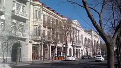 | 5 | House of Musa Nagiyev | The building was built in 1910 by the order of Musa Nagiyev. Ploshko used the classical style and order system style direction of the style. Large pilasters of ionic columns connected the risalites in the corner and the central part in the form of a portico for two floors. The rhythm of the window openings with alternating curved and rectangular sanders, expensive frames determines the volume plasticity of the facade, which is distinguished by a proportional distribution of traction between the floors and a successfully increased cornice. Renaissance balcony railings on the facade attract special attention and actively participate in the formation of the artistic image of the house.[7] |