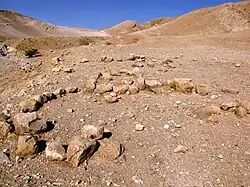 An excavation directed by David Ben-Shlomo and Ralph K. Hawkins took place in June 2017.[5] During the course of the excavation a number of large and small rounded and oval enclosures of single-course limestone rubble walls were discovered, all of them almost entirely empty of finds.[6]